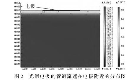 由(yóu)圖2可以看出,在(zai)管道流體平均(jun1)流速爲5m/s時,靠近(jin)管❌壁🌈和電極㊙️附(fu)近的部分流場(chang)流速極小,這部(bu)分即爲黏性底(dǐ)層。