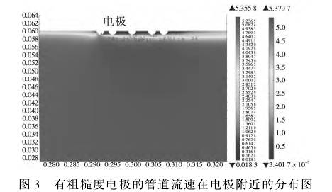 在管道模型(xíng)中,對測量電極(jí)部分設定表面(miàn)粗糙度,且粗糙(cao)度大于黏性底(dǐ)層厚度,如圖3所(suǒ)示。