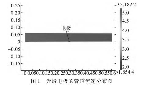 應用CFD方法對流(liú)場進行數值仿(páng)真來驗證該方(fang)法。在同🈚樣的☎️邊(bian)界條件和初始(shǐ)條件下,設定管(guǎn)道直徑爲60miimn,流體(ti)介質爲水,平均(jun1)流速爲5m/s,雷諾數(shù)爲300000,對電極處的(de)管道口徑加寬(kuan),電極處粗糙度(du)爲0,流速☎️分布雲(yun)圖如圖5所示;電(diàn)極處的流場雲(yun)圖放大如圖6所(suǒ)示;對電極部分(fèn)設定粗糙度,此(cǐ)時電極處的流(liú)場圖如圖7所示(shì)🐕。