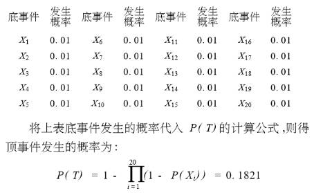 故障樹定量(liang)分析的主要任(rèn)務是計算頂事(shi)件的發生概率(lǜ)和對各底事件(jiàn)進行重要度分(fen)析