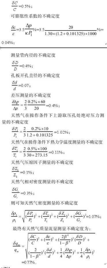 當置信概率爲95%時(shi),差壓測量的不确(què)定度按式(3)估算: 式(shì)中:ξp——差壓儀表的精(jīng)度等級;pk——差壓儀表(biǎo)的量程;pi——差壓測量(liàng)點。 2.6天然氣密度測(ce)量的不确定度 天(tiān)然氣密度可以用(yòng)天然氣密度計安(an)裝于計量點♈上在(zai)線實測,也可以根(gen)據相應平面處的(de)靜壓、溫度等特性(xing)資料進🌈行計算。目(mu)前國内普遍采用(yòng)後一種🐅方法,按式(shi)(4)計算: 式中:Ma——幹空氣(qì)的摩爾質量;R——通用(yong)氣體常數;Za——幹空氣(qi)在标準參比條件(jiàn)下的壓縮因子;Zn——天(tiān)然氣在标準參比(bǐ)條件☎️下的壓縮因(yin)子;P1——天然氣在操作(zuò)條件下上遊取壓(ya)孔處的絕對靜壓(ya);T1——天㊙️然氣在操作條(tiáo)件下的熱力學溫(wen)度;Z1——天然氣在操作(zuò)條件下的壓縮因(yin)子;Gr——天然氣📱的真實(shí)相對密度。 (1)天然氣(qi)在操作條件下上(shang)遊取壓孔處絕對(duì)壓力測量📐的不确(què)定度 當置信概率(lü)爲95%時,天然氣在操(cāo)作條件下上遊取(qǔ)壓孔處絕對壓🐅力(li)測量的不确定度(du)按式(6)估算: 式中:ξp——壓(yā)力儀表的準确度(dù)等級;pk——壓力儀表的(de)量程;Pi——絕對壓力測(cè)量🔴點,按式(7)計算: Pi+pi+Pa(7) 式(shi)中:pi——表壓力測量點(dian);Pa——當地大氣壓。 對組(zǔ)合測量儀表應按(àn)組合測量不确定(ding)度求解。(2)天然氣在(zai)👉操作條件下熱力(lì)學溫度測量的不(bú)确定度🌈 當置信概(gai)率爲95%時,天然氣在(zai)操作條件下熱力(lì)學溫度測量的不(bu)确定度按式(8)估算(suan): 式中:ξt——溫度儀表準(zhun)确度等級;tk——溫度儀(yi)表的量程;Ti——熱力學(xue)溫度測量點,按式(shi)(9)計算: Ti=ti+273.15(9) 對組合測量(liang)儀表應按組合測(cè)量不确定度求解(jie)。 (3)天然氣壓縮因子(zi)測量的不确定度(du) 天然氣壓縮因子(zǐ)按AGANX-19計算,其測量不(bu)确定度爲0.5%;按GB/T17747.2-2011或GB/T17747.3-2011計(jì)😘算,其🐪測量不确定(dìng)度爲0.1%。 (4)天然氣相對(duì)密度測量的不确(què)定度取0.3%。 3不确定度(du)計算實例 已知某(mou)孔闆流量計測量(liàng)參數如下: 孔闆開(kāi)孔直徑d=45mm; 上遊測量(liang)管内徑D=200mm; 差壓?p=20kPa; 天然(rán)氣在操作條件下(xia)上遊取壓孔處的(de)表壓pi=1.2MPa; 當地大氣壓(ya)Pa=0.101325MPa; 天然氣在操作條(tiáo)件下的溫度ti=30℃; 差壓(ya)儀表準确度等級(ji)0.2%,量程60kPa; 壓力儀表準(zhun)确度等級0.2%,量程10MPa; 溫(wēn)度儀表準确度等(děng)級0.5%,量程100℃。 可估算得(de):β=0.225,則有流出系數的(de)不确定度 4結論 孔(kǒng)闆流量計質量流(liú)量測量的不确定(ding)度主要來源于六(liu)🍓個方面:流出系數(shu)的不确定度、可膨(peng)脹性系數的不确(que)定度、測量管内徑(jing)的不确定度、孔闆(pan)開孔直徑的不确(què)定度、差壓測量的(de)不确定度、天然氣(qì)密度測量的不确(que)定度。從以上幾方(fang)面人手就可以有(yǒu)效降低孔闆流量(liàng)計質量流量測量(liàng)的不🏃🏻♂️确定度,提高(gao)其計量性能,爲全(quan)社會越來越受到(dào)重視的能♈源計量(liàng)提供穩定可靠的(de)計量💘數據。