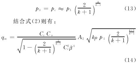 對于臨界流,可(kě)以用一般的流通(tong)方程(2)來進行描述(shu)。當發生臨界流時(shí),孔闆最小流束截(jié)面處的壓力恒定(dìng)爲臨界壓力,即: