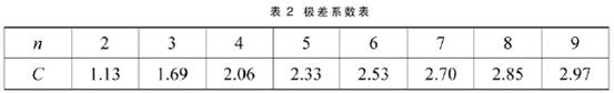 C是極差系數,可(kě)查表得到,極差(chà)系數表如表2所(suo)示。