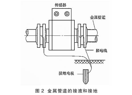 (3)電磁(cí)流量計流量信(xìn)号是以被測導(dǎo)電液體爲基準(zhǔn)電位的,整個測(ce)量管道内的導(dǎo)電液體看成電(diàn)阻爲零的導體(ti),兩個電極對導(dǎo)電液體爲基準(zhǔn)電位的,整🈲個測(ce)量管道内的導(dǎo)電液體看成電(dian)阻爲零的導體(ti)[7]。當傳感器前後(hou)爲金屬管道,應(ying)🔴合理接地💁,如圖(tu)2所示,如果液體(ti)輸✌️送管道爲非(fei)金屬管或其他(tā)絕緣管,應在傳(chuán)感器和輸液管(guan)道之間裝内部(bu)與液體接觸的(de)金屬接液環(或(huò)稱接地環🌂),然後(hou)用導線與傳感(gan)器接😍地🏃🏻♂️端連接(jie)接地[4],如圖3所示(shi)。