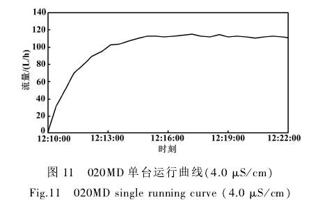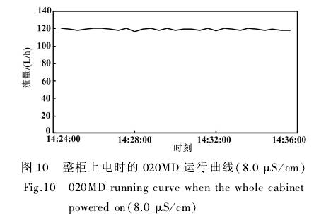 由前(qian)述可知(zhī),流體電(dian)導率的(de)高低對(dui)采集的(de)信号強(qiang)度有直(zhi)接影⭐響(xiǎng)。當電導(dǎo)率低時(shí),電極反(fan)饋的信(xìn)号較弱(ruo)受到幹(gan)😍擾的🛀影(yǐng)響越明(míng)🈲顯,低電(diàn)導率的(de)流量測(cè)量對信(xìn)号采集(jí)的要求(qiú)更高。壽(shou)期末的(de)測量介(jiè)質電導(dǎo)率約爲(wei)4.0μS/cm。對此,将(jiāng)電導率(lü)降至4.0μS/cm,運(yùn)行一段(duàn)時間後(hou),觀測到(dào)020MD單台運(yùn)行🌐穩定(ding),運行曲(qu)線如圖(tú)11所示。