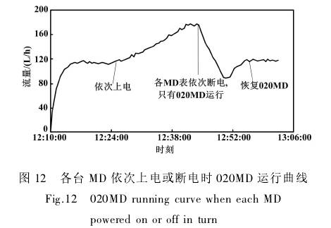 由(you)圖12可知(zhi),各台流(liu)量計依(yi)次斷電(dian)至020MD單台(tai)運行時(shi),020MD流量顯(xiǎn)✊示穩💋定(ding)💋。
