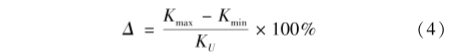 式中:Kmax爲同一流量(liàng)點下不同工況下(xia)儀表系數最大值(zhí);Kmin爲同一流量點下(xia)不同工況下儀表(biao)系數最小值。