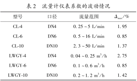 從表(biǎo)2中可以得到,試驗(yan)中系數最大相差(cha)2.7%之多,所選進行試(shì)驗渦輪流量計最(zuì)大允許誤差爲0.5級(ji),直管段口徑改變(bian)造成的誤差遠遠(yuan)超過流量計的最(zuì)大允許誤差。