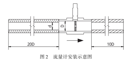 圖2爲本次試驗(yàn)渦輪流量計的安(ān)裝示意圖,圖中D爲(wèi)被校渦輪流量計(ji)的通徑,d爲上下遊(yóu)直管段的内壁直(zhí)徑。依據JJG1037-2008《渦輪流量(liang)計檢定規程》的要(yào)求,保證上下遊的(de)直管段與被校流(liú)量計同軸安裝,并(bìng)且連接處的密封(feng)墊不得凸入流體(tǐ)管道内,上遊直管(guan)段長度爲20D,下遊直(zhí)管段長度爲10D。試驗(yàn)過程中,保證試驗(yan)流體爲單相液體(tǐ),介質爲航空燃油(yóu)RP-3,