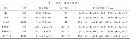 研究中選擇常(cháng)用的CL系列渦輪流(liu)量計和LWGY系列渦輪(lún)流量計進行試驗(yan)。分别選取DN4,DN6和.DN10口徑(jìng)的流量計,且均爲(wei)0.5級。
