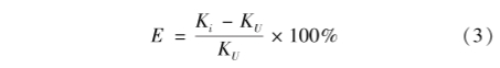 式中:E爲其它(ta)工況與标準工況(kuàng)下的系數差值比(bi);Ku爲标準工況下的(de)儀表系數,m-3或L-1;Ki爲其(qi)它工況下的儀表(biǎo)系數,1m-3或L-1。