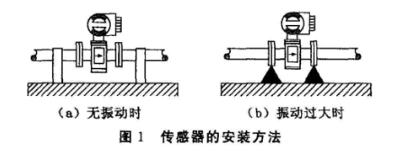 (1)安(an)裝環境(jìng):平台常(cháng)用的電(diàn)磁流量(liang)計傳感(gǎn)器的外(wài)殼需要(yào)防水防(fáng)爆,對安(ān)裝場所(suo)的要求(qiu)是:①當測(cè)量介質(zhì)爲多相(xiàng)流體時(shi),應選擇(zé)不😍會引(yin)起相分(fen)離的安(an)裝場所(suo);②場所内(nèi)的測量(liang)管線内(nèi)不應有(you)負壓;③避(bi)免安裝(zhuāng)在電動(dòng)機、變壓(yā)器等強(qiang)電設備(bei)附近,以(yi)免引起(qi)電磁場(chǎng)幹擾;④避(bì)免安裝(zhuang)在周圍(wéi)有💜強腐(fǔ)蝕性氣(qi)📞本的場(chǎng)所;⑤環🐇境(jìng)溫度一(yī)般🔅應在(zai)-25℃~60℃範圍内(nèi),盡可能(neng)避免陽(yang)光直射(shè);⑥安🈚裝在(zai)無振動(dong)或振動(dong)小的場(chang)所,如果(guo)振動過(guò)大,則應(yīng)在📐傳感(gǎn)器前、後(hòu)的管道(dào)加固定(dìng)支撐,如(rú)圖1所示(shì);⑦環境相(xiang)對濕度(du)一般應(yīng)在10%~90%的範(fan)圍内[臼(jiù);⑧安裝流(liú)量計的(de)場所因(yīn)盡量避(bi)免雨水(shui)潮濕。