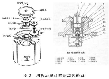 (4)出軸(zhóu)密封部分:出(chu)軸密封部分(fen)是連接流量(liang)計表頭☂️和流(liu)🛀量計殼體的(de)部分,它一般(ban)有三種結構(gou):磁性連軸器(qi)、機械密封式(shì)的連接、“O”型密(mì)封圈式的連(lian)接。這裏🏃♀️我們(men)主要分析以(yǐ)磁性聯軸器(qì)🆚爲連接的結(jié)構易出現的(de)故障✨。磁性聯(lián)軸⛷️器脫磁,包(bao)括打滑,溫度(dù)升高,都非常(cháng)容易引起脫(tuo)磁。無法轉動(dong),就帶動不了(le)精度修正器(qi)轉動,那麽依(yi)次向上,也就(jiù)不發生轉動(dòng)。出軸密封的(de)聯軸器脫磁(cí),不能發生轉(zhuan)動,帶🤞動.上面(miàn)的精度修正(zheng)器裏面的齒(chi)輪也不發生(shēng)轉動,所以字(zi)輪也不再轉(zhuǎn)動(圖2)。