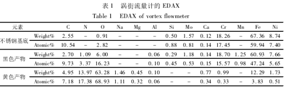 将渦街流(liú)量計的不鏽鋼基(ji)底和圖1中的腐蝕(shí)産物♍進行EDAX分析🚶♀️,其(qí)測試結果如圖2和(hé)表1所示。可以看出(chū),不鏽鋼基底含有(you)C、O、Si、Mo、Ca、Cr、Fe、Ni元素;黑色腐蝕産(chǎn)物含有C、NO、Al、Si、Mo、Ca、Cr、Mn、Fe、Ni元素;黃色(sè)腐蝕産物含有C、N、0、Na、Mg、Al、Ca、Cr、Fe、Ni元(yuán)素。與不鏽鋼基底(di)相比.黑色腐蝕産(chan)物主要增加了N、Al.Mn元(yuan)素;黃色腐🛀蝕産物(wù)主要增加了N、Na、Mg、Al元素(su).兩者腐蝕産物共(gòng)網🧑🏾🤝🧑🏼增加了N和A1元素(sù)。其中.N元素直接來(lái)源于四🔆氧化二氮(dàn)參與反應形成的(de)含N産物,而A1元素很(hen)🌂可能來自周圍環(huan)境。比如水中的雜(za)質代入等。黃色腐(fǔ)蝕産物中的Na和Mg的(de)存在可以作爲佐(zuǒ)證。另外.不鏽鋼基(jī)底N含量、0含量、Cr含❌量(liang)、Fe含量、Ni含量的原子(zǐ)百分比爲0%、2.82%、17.45%、59.94%.7.40%.黑色腐(fu)蝕産物和黃色腐(fǔ)蝕産物的N含量💃🏻、0含(hán)量、Cr含量、Fe含✏️量.Ni含量(liang)的原子百分比分(fèn)别爲3.37%、16.23%、15.57%.47.24%、5.65%和17.38%.68.93%、0.33%、3.83%.0.51%。由此得出(chū).與不含N元素的不(bú)鏽⛷️鋼基底👌相比。黑(hēi)色腐蝕産物和黃(huáng)色腐蝕産物的N含(han)量和0含量更高.而(ér)Cr含量、Fe含量和Ni含量(liang)相對更低.同時黃(huang)色腐蝕産物的N含(hán)量😄和🙇♀️0含量比黑色(se)腐蝕産物的N含量(liang)💘和O含量要高很多(duō)。而Cr含量、Fe含量和Ni含(han)量相對要少很多(duo)。能譜結果表明.N元(yuan)📐素的參與導緻不(bú)鏽鋼基底表🔞面的(de)腐蝕.而🐇N元素的直(zhí)接來源是四氧化(hua)二氮.其與不鏽鋼(gāng)基底表面在環境(jìng)因素作用下發生(sheng)複雜的化學或電(dian)化學反❌應🚶導緻N元(yuan)素進入腐蝕⛷️産物(wu)中。黃色腐蝕産物(wu)比黑色🌈腐蝕産物(wu)的腐蝕程度更重(zhong).這也表明不鏽鋼(gang)基底💃表面的腐蝕(shi)程度與進入腐蝕(shí)産物中的N含量有(you)關🤟。由于四氧化二(èr)氮本身不與幹燥(zao)的不鏽鋼反應,故(gù)存在某種中間反(fan)應物質.該物質含(han)量越高.不鏽鋼‼️基(ji)底表面腐蝕💜越嚴(yán)重。