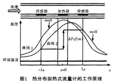 熱分布型熱式流(liu)最計的T.作原理如(ru)圖1所示,傳感元㊙️件(jian)由上遊熱🐪電阻、加(jiā)熱器利下遊熱電(dian)阻組成,加熱器位(wei)于管道中心,使得(dé)傳感元件溫度高(gao)于壞境溫度,上遊(yóu)熱電阻和下遊熱(re)電阻對稱分布于(yú)加熱器✂️的兩側。圖(tú)1中曲線1所示爲管(guan)道中沒有流✍️休流(liu)過時傳感元件的(de)溫度分布線.相對(dui)于加熱器的上下(xia)遊熱電阻溫度是(shì)對稱的。當有流🏃體(ti)經過熱式傳感元(yuán)件時,溫度分布爲(wei)🍉曲線2,顯然流體将(jiang)上遊部分的熱量(liang)帶給下遊,導緻上(shang)遊溫度比下遊溫(wēn)度🈚低,上下遊熱電(diàn)阻的溫度差△T反映(ying)了流體的流量,即(jí)△T=f(m)。當流體流🐪速過大(dà)時,上下遊熱屯陰(yīn)的溫度差△7趨向于(yu)0,因此熱分布型熱(rè)式流量計用于❤️測(ce)量低流速氣休微(wēi)小流量。氣體質量(liang)流量qm可表示爲