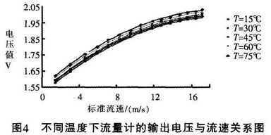 标準氣體流(liú)量計輸出對應被(bèi)測流速v,熱式氣體(ti)流量😘計輸😍出電壓(ya)U.,溫度傳感器輸出(chū)電壓UT。實驗在5組不(bu)同的環境溫度下(xià)進🈲行,分别在每種(zhǒng)溫度下測量15組不(bu)同氣💚體流量🔞值。圖(tu)4爲不同溫度下熱(rè)式氣體流量🚶計輸(shu)出的75組試驗數據(jù)的分布。