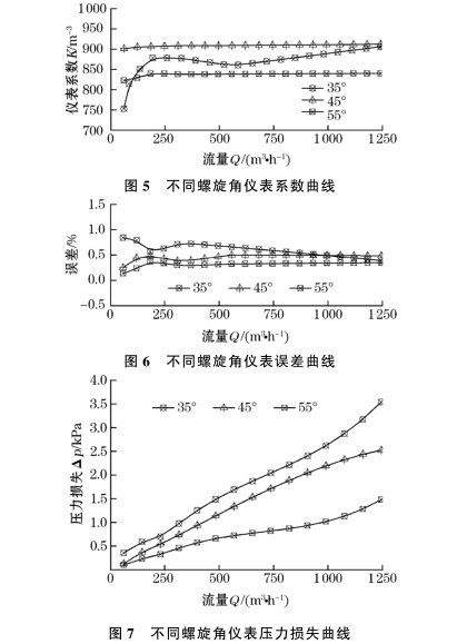表3列出了安(ān)裝3種不同螺旋角(jiao)渦輪流量計在儀(yi)表🌐取壓口處的壓(yā)力損失。