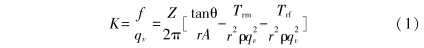 式中:K爲(wèi)儀表系數;f爲脈沖(chong)頻率,Hz;q,爲體積流量(liang),m³/s;Z爲渦輪葉片數;θ爲(wèi)葉片結構角;r爲渦(wo)輪中徑,m;A爲流通面(miàn)爲流體阻力矩⭐,N.m。