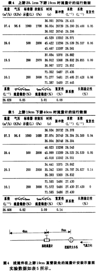 實驗數(shù)據如表(biao)4所示。從(cóng)表4可以(yi)看出,擾(rǎo)流件安(an)裝在距(jù)流t計上(shang)遊端接(jiē)近5D處時(shi),其運行(háng)數據的(de)流量偏(piān)差(qmin≤q≤qt部分(fèn))>3%,不滿足(zú)國家标(biao)準的要(yào)求,但其(qí)重複性(xing)符合流(liú)量計的(de)國家标(biao)準。