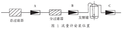 渦(wō)街流量計應(yīng)用在發酵系(xì)統,各企業安(an)裝位置如圖(tú)1)有A、B.C三處🐪不同(tóng)位置,現作淺(qiǎn)述。