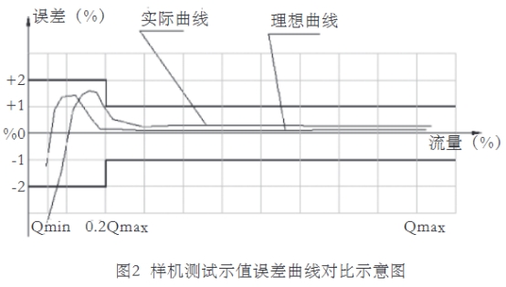圖2所(suǒ)示,在進(jin)行DN100型氣(qi)體渦輪(lun)流量計(ji)的樣機(jī)試制過(guò)程⁉️中,經(jing)測試🔱發(fa)現,流量(liang)計的大(dà)流、中流(liú)段的示(shì)值誤差(chà)趨于線(xiàn)型,而最(zui)小🌈流量(liang)點(Qmin)示值(zhi)誤差卻(que)超出标(biāo)準要求(qiu)。