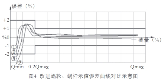 根(gēn)據渦杆(gǎn)、渦輪成(cheng)形原理(lǐ),渦杆、渦(wō)輪傳動(dong)實際是(shi)由螺🏃🏻♂️旋(xuán)齒⚽輪傳(chuán)動演化(hua)而來的(de)。螺旋齒(chǐ)輪傳動(dong)相齧合(hé)的輪齒(chi)是點接(jiē)觸,爲了(le)改善齧(nie)合狀況(kuang),才将渦(wō)杆渦輪(lún)的齧合(he)變爲線(xiàn)接觸。線(xian)接觸♈的(de)阻力要(yao)大于點(diǎn)接觸,于(yú)是将弧(hú)形面的(de)渦輪用(yong)螺旋齒(chǐ)輪替代(dai),如圖3(c)。結(jié)果表明(ming)這種改(gǎi)進非常(chang)有🔞效,流(liu)量計傳(chuán)動阻力(lì)減小、靈(ling)活性提(tí)高;傳動(dòng)平穩、重(zhong)複性良(liang)好,小流(liú)量段的(de)示值誤(wù)差達到(dao)标準要(yào)求,如♍圖(tu)4示值誤(wu)☀️差曲線(xiàn)④。