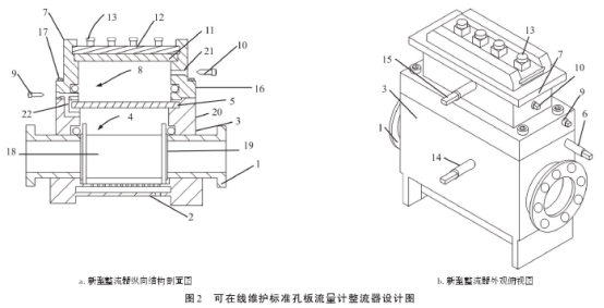 根據國家标(biao)準(GB/T21446-2008)規定,标準孔(kǒng)闆流量計整流(liu)器分爲兩種:一(yi)種爲⛷️管束式,即(ji)整流管;另一種(zhǒng)爲孔闆式,即整(zhěng)流♋闆。兩者均爲(wei)固🈚定式安裝模(mo)式。新型整流器(qì)在固定式整流(liú)器結構的基礎(chu)上,以國家标準(zhun)爲依據,利用閥(fa)腔阻隔結構,結(jié)合齒輪💚傳動原(yuán)理進行設計,使(shǐ)其滿足對☂️管束(shù)式及孔🌏闆式的(de)使用需求(圖2)。