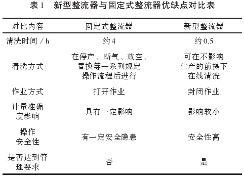 新型整流器(qi)較傳統固定式(shì)整流器在清洗(xǐ)時間、清洗方式(shì)♍、作業方式、計量(liàng)精度影響以及(jí)操作的安全性(xing)方面具有更👈好(hao)的效果,提高工(gong)作效率的同時(shí),對作業期間的(de)安🔴全性也有了(le)明顯保障(表1)。同(tóng)時,根據相關管(guǎn)理規定,計量設(shè)備需在半年内(nei)清洗、維護,但受(shòu)實際生産條件(jiàn)的限制,難以達(dá)到管♋理規定要(yào)求,新型整流器(qi)設計的提出,可(ke)有效解決無法(fǎ)按期清洗維護(hu)的問題。