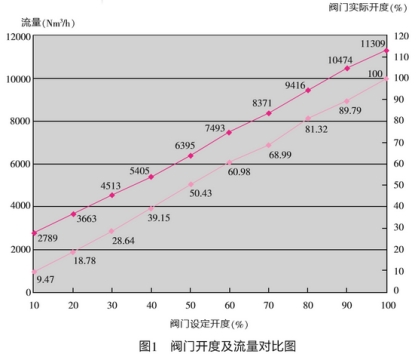 由圖1可看(kan)出,當流量調節(jiē)閥開度在0~100%範圍(wei)内等百分比調(diao)節時,計量支路(lu)流量同時等百(bai)分比變化,有效(xiào)地起到控制流(liu)量、防止流量計(ji)量超限消峰填(tián)谷的作用。