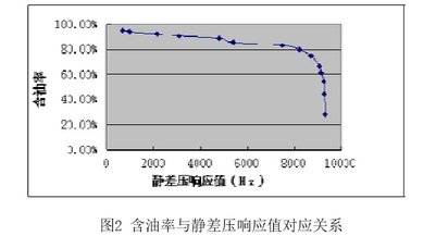 固定(ding)一定長(zhǎng)度(儀器(qi)設計的(de)差壓傳(chuán)感器上(shàng)下壓力(li)面的導(dǎo)🔞壓孔間(jian)距爲0.5m)的(de)管段,關(guan)閉集流(liú)器,在不(bú)同含油(you)率下差(cha)壓傳感(gan)器的靜(jìng)差壓響(xiang)應值與(yu)含油率(lǜ)的對應(yīng)關系如(ru)圖2所示(shì)。