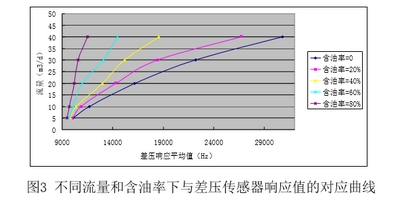 固(gu)定節流(liú)孔(即出(chū)液孔)寬(kuan)度爲5mm,在(zai)油水兩(liǎng)相流時(shí),打開集(ji)流器👅集(ji)流,改變(bian)總流量(liang)和含油(you)率,差壓(yā)傳感器(qi)的響🏃♀️應(yīng)值如圖(tú)3所示。