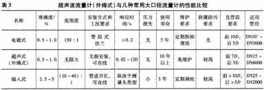 超聲(sheng)波流量(liàng)計(外縛(fu)式)與幾(jǐ)種常用(yong)大口徑(jing)流量計(ji)的性能(neng)比較🐪如(rú)表3所示(shì)。
