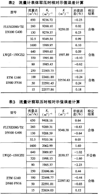 由表2可以(yi)看出,當在流量(liang)計表體取壓時(shi),按JJC1037-2008之5.1.1規定3台流(liu)㊙️量計的檢定結(jie)果均爲合格。