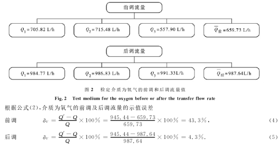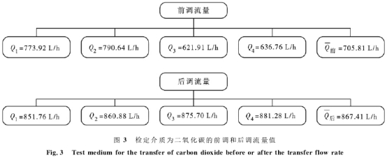 對(duì)于前調(diao)和後調(diao)流量,以(yǐ)每組中(zhōng)4次實際(jì)流量值(zhí)的平均(jun)值爲前(qian)調和後(hou)調最後(hou)的實際(jì)流量值(zhí),避免粗(cū)大誤差(cha)對實驗(yàn)結果的(de)影響.同(tóng)理根據(jù)公式(2),二(èr)氧化碳(tàn)修正後(hòu)檢定點(dian)的值爲(wei)806.53L/h,由圖3中(zhōng)前調的(de)平均值(zhí)與後調(diào)平均值(zhí)可得二(èr)氧化碳(tàn)的示值(zhi)誤差👄:前(qián)調爲14.3%,後(hou)調爲7.0%,其(qi)計算過(guo)程與氧(yang)氣的示(shì)值誤差(chà)㊙️計算過(guo)程相同(tong).