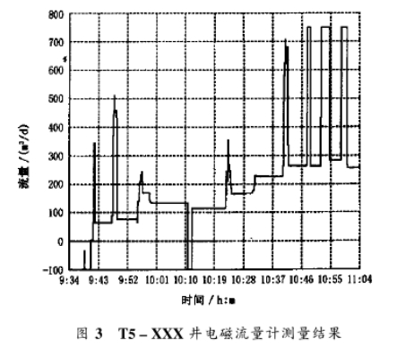 (2)檢驗井下(xià)管柱的密(mì)封性這一(yī)方法主要(yào)是對僅器(qì)在井下不(bú)同地點的(de)測量結果(guo)進行比較(jiào),根據流量(liang)的增減來(lai)判斷井下(xià)管柱🌈密封(feng)情況。若注(zhù)水管柱有(you)洩漏,則⁉️流(liú)量的測量(liang)結果會出(chu)現上部高(gao)、下部低的(de)🔱情況;若底(dǐ)部凡爾球(qiu)的密封不(bu)好,則在撞(zhuang)擊筒會出(chu)現流量不(bu)爲零的情(qing)況。2025年12月13日(ri),在下用浮(fú)子流量計(ji)測試時發(fā)現全☎️井流(liu)量與地面(miàn)計量結果(guo)相差15m³/d,有關(guan)人員懷疑(yi)井下注水(shui)管柱🥵漏失(shi)。由于用浮(fú)子流量計(jì)無法驗證(zhèng),下入電磁(cí)㊙️流量計測(ce)量,測量結(jié)果如圖3所(suǒ)示。圖3上10時(shi)40分到11時07分(fèn)間的幾個(ge)流量台階(jiē)(從左到右(you))分别是在(zai)井下1000m、500m-100m測得(de)的,除了500m處(chu)是全井流(liu)量值,其它(tā)與地面計(jì)量㊙️結果基(ji)本一緻,說(shuo)明井下管(guǎn)柱基本不(bu)漏。