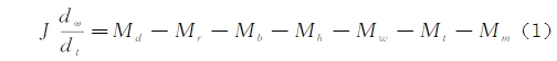 式(1)中,J爲葉輪(lún)轉動動量;ɷ爲葉(yè)輪旋轉角速度(dù);Md爲葉輪驅動力(lì)📞矩,Mr,爲葉片表面(miàn)粘性摩擦阻力(li)矩;Mb爲軸與軸承(cheng)間的粘性摩👅擦(cā)阻力矩;Mh爲輪毂(gū)周面上粘性摩(mó)擦阻力矩;Mw爲輪(lún)毂端面上的粘(zhān)性摩擦阻力矩(jǔ);Mt爲葉片頂端與(yu)殼🎯體間隙的粘(zhān)性摩擦阻力矩(ju);Mm爲電磁阻力🚶矩(jǔ)和軸承上摩擦(ca)阻力矩🛀🏻之和。