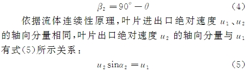 當流量恒定(ding)時,式(3)中ρ、Q、u1、a1爲已知(zhī)量,考慮到葉輪(lún)葉片旋轉🍉方向(xiàng)上流❗體進出口(kou)線速度相同,記(ji)進出口線速度(dù)分别設㊙️爲Ur1和👌ur2,ur1=ur2=ur;記(ji)流體與葉輪葉(ye)片出入口的相(xiàng)對💜角速度分别(bie)爲ɷ1和ɷ2,則圓周運(yùn)動方向夾角β2與(yu)葉片與軸線結(jie)構夾角θ之間有(yǒu)式(4)所示關系: