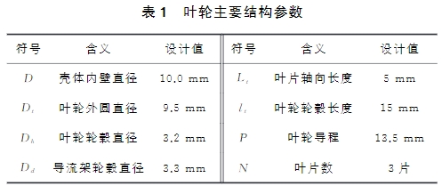 基于上述分析(xī)可見,葉輪的運(yùn)動特性主要受(shou)其結構參數、流(liú)體粘性系數等(deng)影響。爲分析小(xiǎo)流量渦輪結構(gòu)的流場特🍓性,設(she)計參數如表1所(suǒ)示葉輪系統,借(jie)助UG軟件建立其(qí)三維仿✊真模型(xing);将該三維模型(xing)導入ANSYSWork-bench軟件中仿(páng)真。