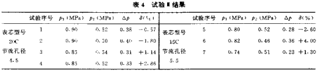 試驗II表明示值(zhí)誤差值小于示值(zhi)誤差限(±4%)、示值誤差(cha)最大值δmax=4.0%,最小值Δmin=0.57%,示(shì)值誤差平均值δ=2.04%;壓(yā)力差最大值△pmax=0.4MPa,最小(xiao)值△pmax= 0.23MPa,壓力差平均值(zhí)△p=0.33MPa.