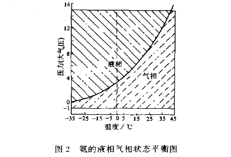 氨的液相氣(qi)相狀态受溫度、壓(yā)力的影響而變化(huà).氨的液相氣相狀(zhuang)态平衡圖[2如圖2所(suo)示。