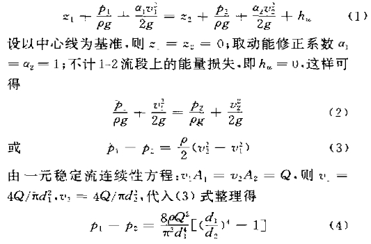 爲(wei)了理論分析的便(biàn)利,根據實際工況(kuàng)的要求。液氨介質(zhì)流可以認同爲一(yī)元穩定流.即流量(liàng)Q=C;取液氨的密度ρ=(1.6g/cm³(在(zai)10~40C.壓力0.5~1.5MPa);表頭進管直(zhi)徑d1爲定值,節流孔(kǒng)闆孔徑d2可調換,分(fen)别爲d2=2.5mm,3.5mm,4.5mm,5.5mm。