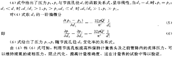 由(yóu)(4)和(6)式可知,利用節(jie)流孔闆提高和保(bao)持計量表頭及之(zhi)前管路内的流體(tǐ)壓力.可以維持液(ye)氨的液相壓力,阻(zu)止汽化,提高計量(liang)精度,這在計量表(biao)的試驗中得以驗(yàn)證。