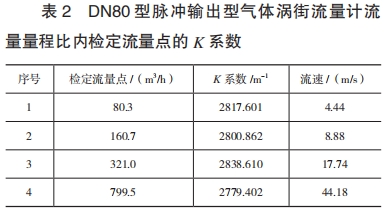 最(zuì)小流量爲80m³/h。按(an)照JJG1029--2007的要求,各(gè)檢定流量點(dian)的K系數如表(biao)2所示。
