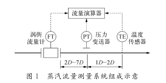 在以渦(wo)街流量計爲核心(xin)組成的蒸汽流量(liang)測量系統中,還需(xū)配置蒸汽密度測(ce)量手段和流量演(yan)算器,該系統的組(zu)成如圖1所示,這幾(ji)個部分組成大約(yue)引人0.3%的不确定度(du)。