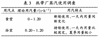 熱(re)帶廠蒸汽使用(yong)量從一天的時(shí)間段來看,存在(zài)着用量大小變(bian)化大、短時間集(jí)中用汽、大部分(fen)時間用汽小而(er)均勻的特點。按(an)季節來看,冬季(jì)的用汽量要明(míng)顯大于夏季。表(biǎo)3對熱帶廠的蒸(zhēng)汽使用情況作(zuò)了⭕簡單分析。