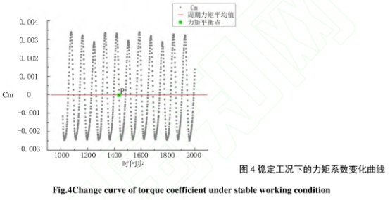 當渦輪流量計(jì)達到穩定工況(kuang)時,流量的葉輪(lun)轉速也應趨于(yu)💁一🔴穩定值,進而(ér)儀表系數K也趨(qu)于一穩定值108]。在(zài)✊流量🤞計的仿真(zhen)過程中,爲了得(dé)到穩定空工況(kuàng)下的葉輪轉速(su),對葉輪的旋轉(zhuǎn)軸進行✊力矩系(xi)數Cm和👈葉片表面(miàn)🐇阻力drag的監控。計(jì)算過程受到葉(yè)輪本身的結構(gou)特點影✏️響,力矩(jǔ)系數Cm和葉片表(biǎo)面阻力drag的值都(dōu)呈現周期性🔞變(bian)化,因此提取Cm和(he)drag值波動趨于平(píng)穩後的6個周期(qī)内的變化數據(jù),計算其周期算(suàn)數平均值,當Cm的(de)周期平均值值(zhí)小于某一-量級(ji)最大限度趨近(jìn)于0時,則認爲此(cǐ)時渦輪流量計(ji)處于穩定工況(kuàng)。圖4爲📞仿真達到(dào)穩定狀态時截(jie)取的力矩系數(shù)☀️變化圖。