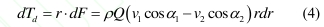 由(yóu)于葉輪受到的(de)驅動力矩Tg是流(liu)體沖擊葉輪葉(yè)片産生的,使用(yòng)💯微元法對葉輪(lun)上一個葉片進(jìn)行分析☁️,在葉片(pian)上💃取半徑爲r處(chu)葉🍓片微元。半徑(jìng)r處的葉片微元(yuán)上所受到的驅(qu)動力dF可表示爲(wèi):
