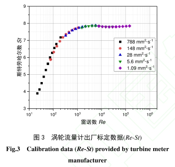 将雷諾(nuo)數作爲标定數據(ju)的橫坐标,代表标(biāo)準流量值,将🚩斯特(tè)☔勞哈爾數作爲标(biao)定數據的縱坐标(biāo),代表流量計對于(yu)标準流♋量值的輸(shū)出響應。渦輪流量(liang)計出廠标定數據(jù)的Re-St散點⭕如圖3所⚽示(shi),流量計在不同粘(zhan)度介質下的輸出(chū)響應被重整爲一(yi)條和雷諾數有🏃關(guan)的曲線,而且在一(yi)個阈值(Re=16400)以上,斯特(tè)勞哈爾數變化範(fàn)圍小于0.5%。這意味着(zhe),即使校✔️準和工作(zuo)場合使用的介質(zhi)粘度不同,隻要雷(léi)諾數超過這個阈(yù)值,經過校準的流(liú)量計示值✉️的不确(què)定度仍然比較低(dī)。