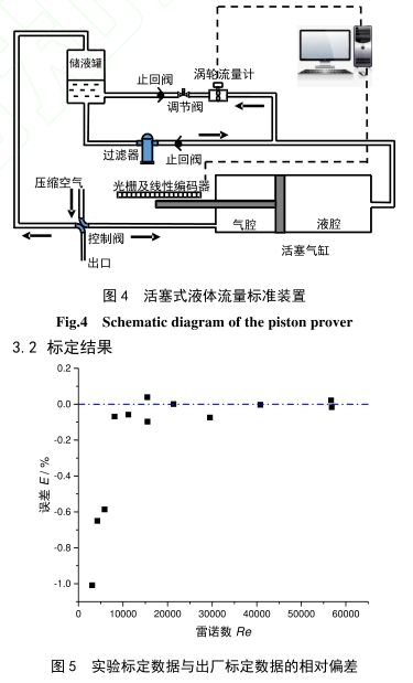 某校準實驗室的(de)小型活塞式液體(ti)流量标準裝置以(yǐ)丙二醇-水溶液爲(wei)介質,将這台DN25渦輪(lún)流量計作爲期間(jiān)核查對象。裝置使(shǐ)用壓縮空氣驅動(dong)的18L主動活📞塞作爲(wèi)标準器✔️(如圖4所示(shi)),最大🔞流量260L/min,裝置的(de)擴展不确定度Ue=0.05%(k=2)。該(gāi)裝置有“運.行”和“返(fǎn)回”兩種操作模式(shì)。在“運行”模式中,壓(ya)縮空氣被引入到(dao)氣腔,以恒定的速(su)度推動活塞向右(you)移動,将介質排出(chū)液腔并通過🥰被檢(jiǎn)流量計。光栅和線(xian)♍性編碼🐆器負責确(que)定活塞的位移。當(dāng)活塞完成一次行(hang)程後,進入“返回”模(mó)式。控制閥切換使(shǐ)壓縮空氣進入儲(chu)液罐,推🌂動活塞向(xiàng)左移動,直至液腔(qiang)完全被介質填滿(mǎn)。系統調整後,準備(bei)進行下一次檢測(cè)。