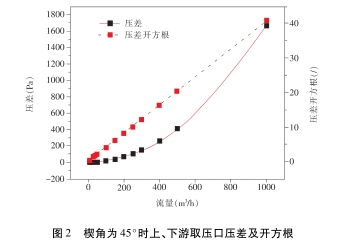 由式(3)可(ke)知,流過孔(kǒng)闆流量計(jì)的體積流(liu)量與節流(liu)件前後壓(yā)差的開方(fang)根呈線性(xing)關系,且經(jing)過原點。